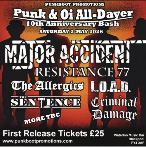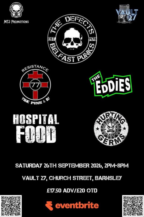 Currently showing 2026 gigs Tuesday 22nd September 2026 Vault 27 - Barnsley 27 Church St, Barnsley S70 2AH Friday 3rd July 2026 Chaos as the crew Queens Hall, 75 Queens Road, Nuneaton, CV11 5LA Friday 22nd May 2026 - Sunday 24th May 2026 Punk on the Peninsula, Dunoon Saturday 2nd May 2026 Waterloo Music Bar - Blackpool The Waterloo Music Bar, Waterloo Road, Blackpool, FY4 2AF |