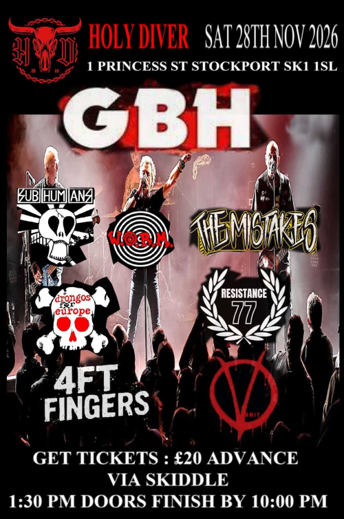 Currently showing 2026 gigs Thursday 26th November 2026 Holy Diver, Stockport 1 Princes St, Stockport, SK1 1SL Saturday 26th September 2026 Vault 27 - Barnsley 27 Church St, Barnsley S70 2AH Saturday 8th August 2026 Rebellion Festival, Blackpool The Winter Gardens, Church Street, Blackpool, Lancashire, FY1 1HL Saturday 4th July 2026 Chaos as the crew, Nuneaton Queens Hall, 75 Queens Road, Nuneaton, CV11 5LA Friday 22nd May 2026 - Sunday 24th May 2026 Punk on the Peninsula, Dunoon Saturday 2nd May 2026 Waterloo Music Bar - Blackpool The Waterloo Music Bar, Waterloo Road, Blackpool, FY4 2AF |