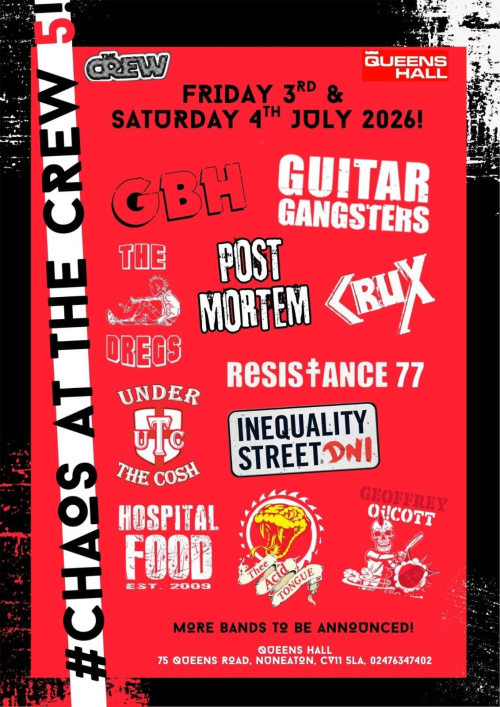 Currently showing 2026 gigs Friday 3rd July 2026 Chaos as the crew Queens Hall, 75 Queens Road, Nuneaton, CV11 5LA Friday 6th February 2026 CLOCKWORK, Brittany France |